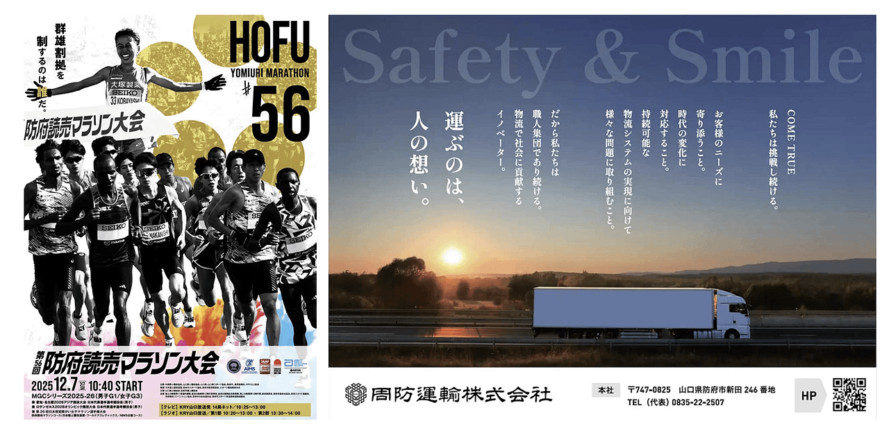 安全と笑顔の周防運輸は、2025年12月7日(日曜日)開催 第56回防府読売マラソン大会を応援いたします。
